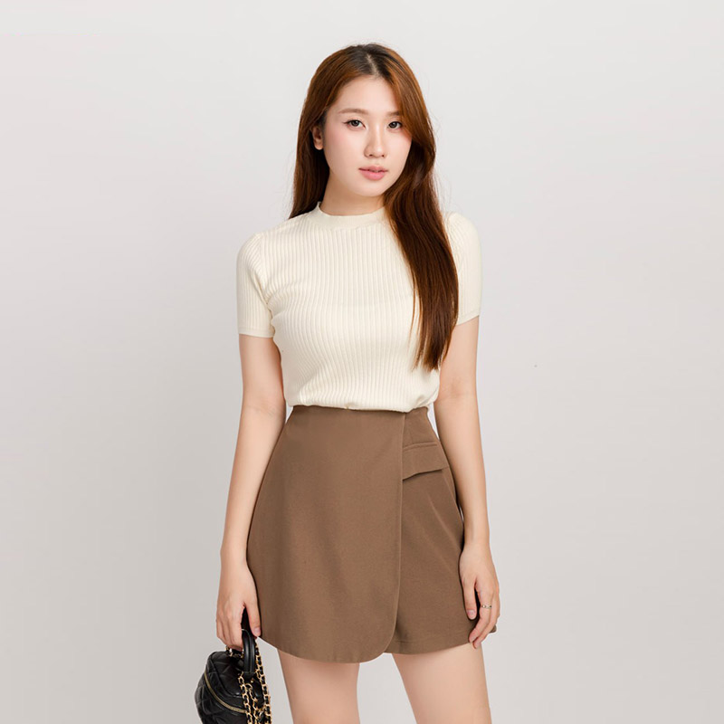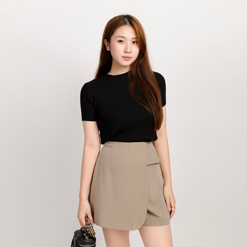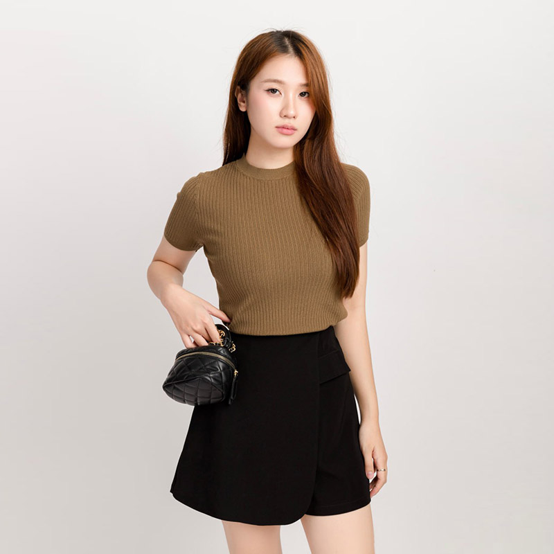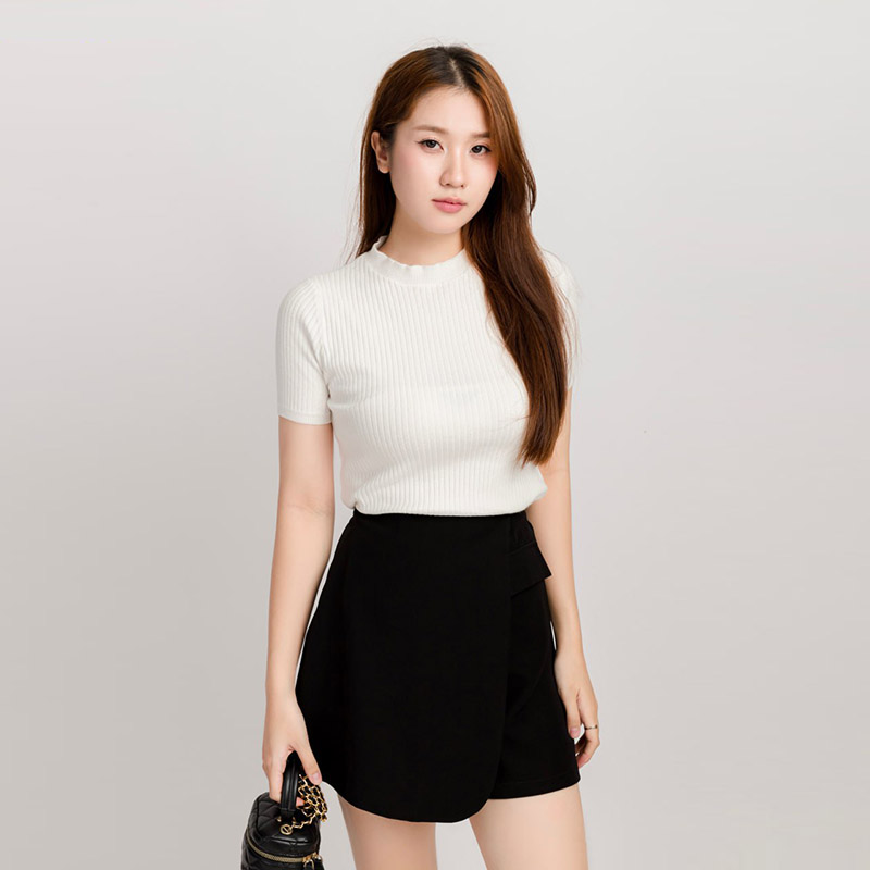 - Tên sản phẩm: Áo Len Tay Ngắn Nữ Cổ Tròn Gân Trơn