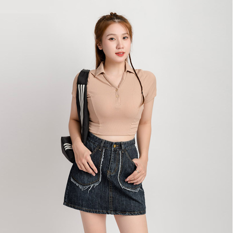 Áo Polo Croptop Nữ Cổ Chữ Y
